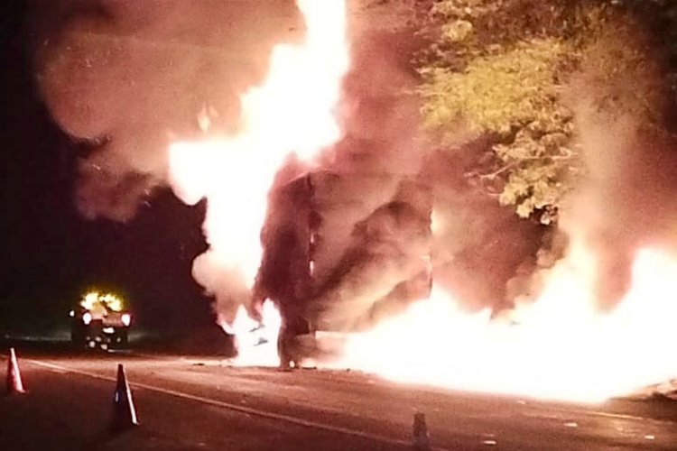 Caminhão com destino a Muriaé é destruído pelo fogo na BR-116