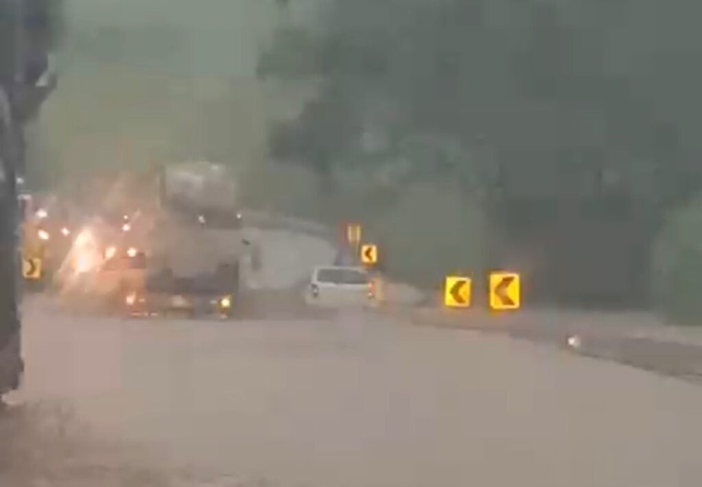 Vídeos que circulam nas redes sociais mostram a gravidade da situação. Em uma das imagens, um carro de passeio tenta atravessar a ponte já tomada pela água. Antes de alcançar o outro lado, o veículo é arrastado pela enxurrada e fica imobilizado no meio da ponte, com a água atingindo aproximadamente metade do automóvel.
