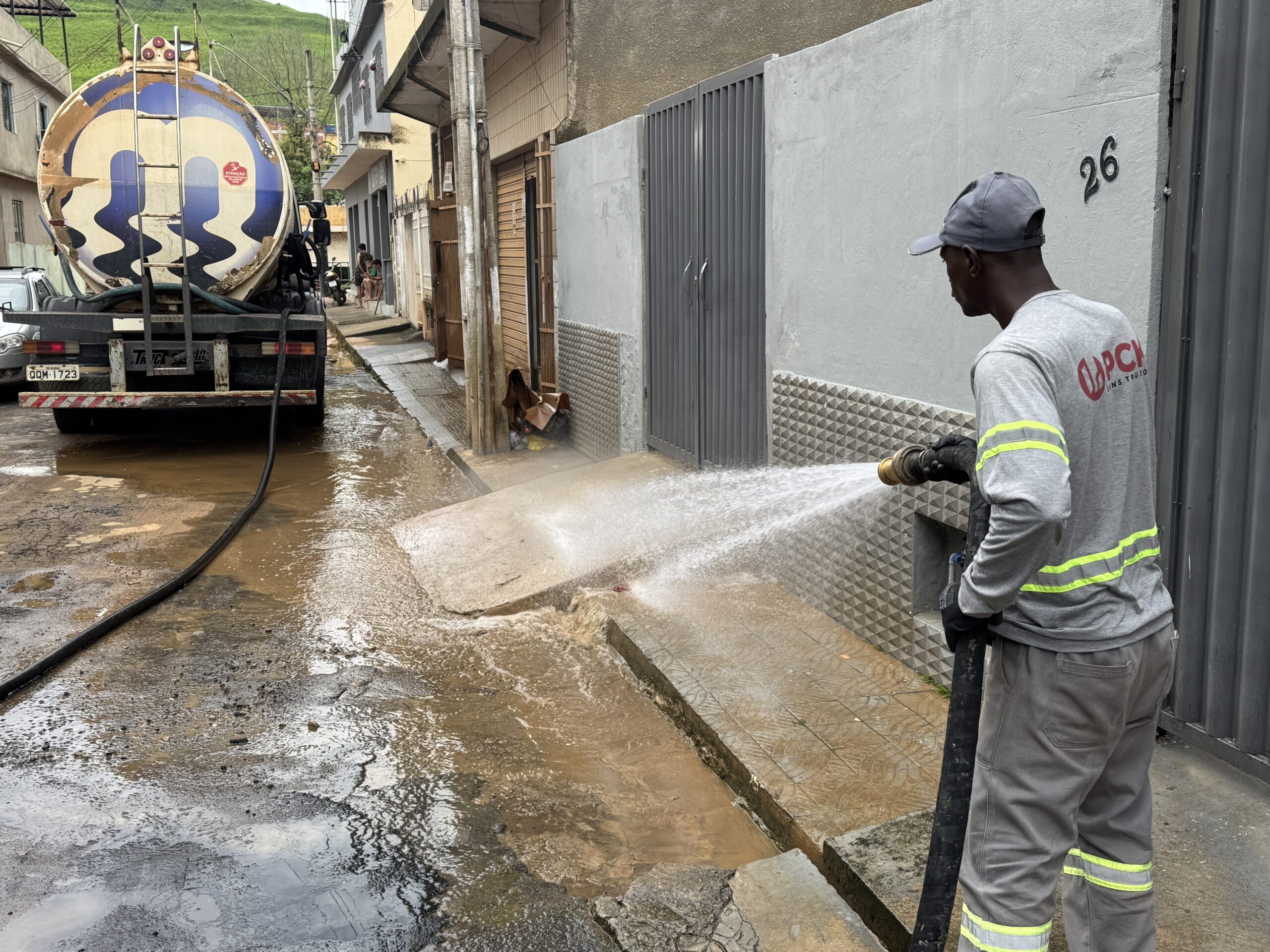 O Departamento Municipal de Saneamento Urbano (Demsur) segue realizando, nesta quarta-feira, um amplo trabalho de limpeza nos locais mais afetados pela enchente em Muriaé. As ações estão concentradas em três frentes de trabalho: bairros Napoleão, Santana e Barra.