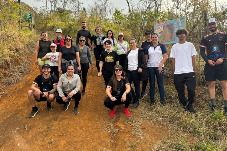 Nossa equipe acompanhou um grupo de montanhistas em uma trilha até o cume. A subida, que dura cerca de uma hora, exige esforço físico, mas a recompensa ao final compensa cada passo: do alto, é possível contemplar uma vista privilegiada de toda a cidade de Divino e das paisagens ao redor.