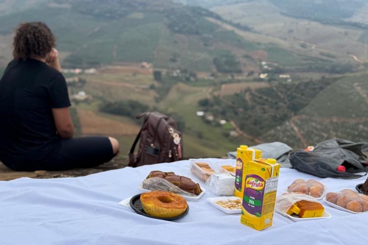 Para celebrar o momento, o grupo levou alimentos e preparou um café da manhã coletivo no topo da montanha, reforçando o espírito de união que o local inspira.