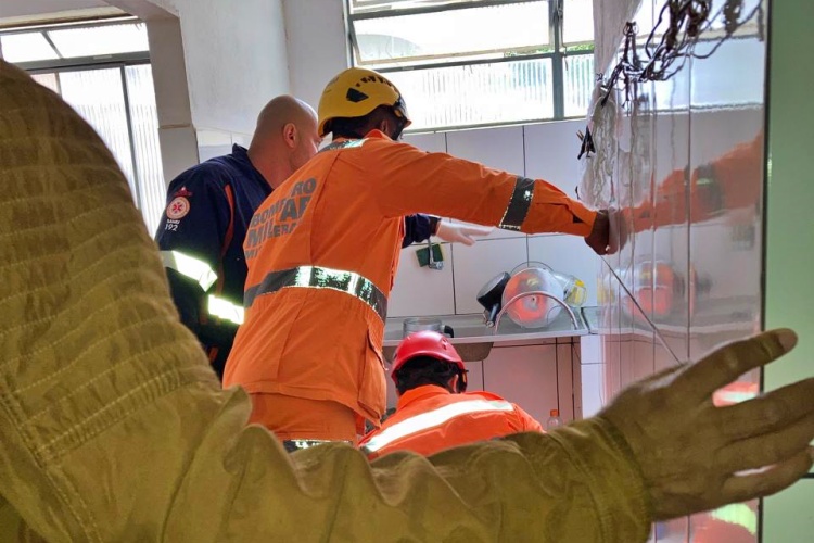 Uma idosa de 70 anos de idade teve as duas pernas quebradas após o piso da cozinha de seu apartamento ceder, provocando uma queda de aproximadamente 2,5 metros. O acidente aconteceu em Carangola e mobilizou equipes do Corpo de Bombeiros Militar e do SAMU.
