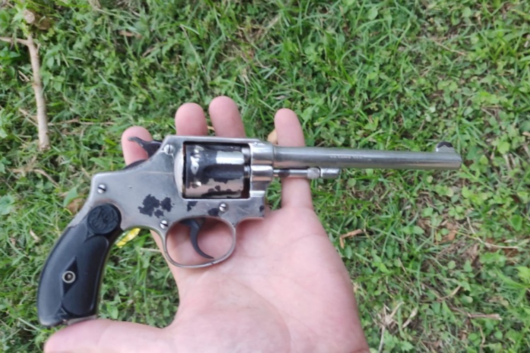 Durante a perseguição, um dos suspeitos – o adolescente – foi flagrado jogando um objeto em um matagal antes de atravessar o rio na tentativa de escapar. Ele foi alcançado e apreendido. No ponto onde o objeto havia sido dispensado, os policiais encontraram um revólver calibre .32 carregado com três munições, além de um aparelho celular.