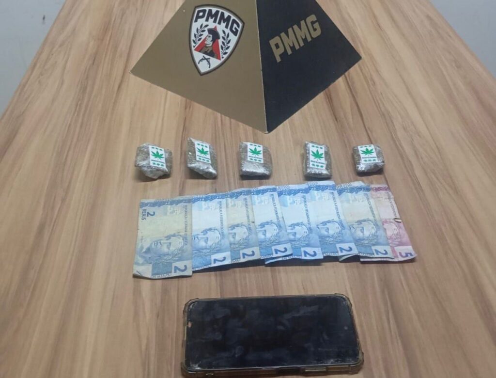 Durante as buscas, foram apreendidos cinco tabletes de substância semelhante à maconha, além de R$ 19 em dinheiro e um aparelho celular. O material estava embalado e pronto para a venda. O suspeito foi preso em flagrante e encaminhado à Delegacia de Polícia, juntamente com os itens apreendidos. A motocicleta foi removida para um pátio credenciado.