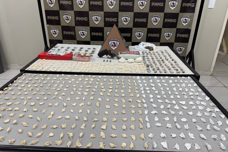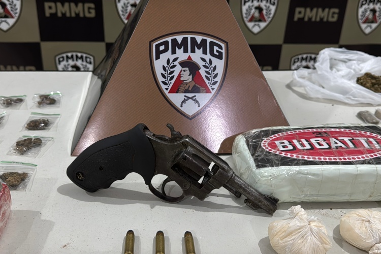 Ao todo, foram encontrados 548 papelotes de cocaína, uma barra de pasta base da mesma substância, duas barras e 75 tabletes de maconha, além de 29 porções de skank e um revólver calibre 32.