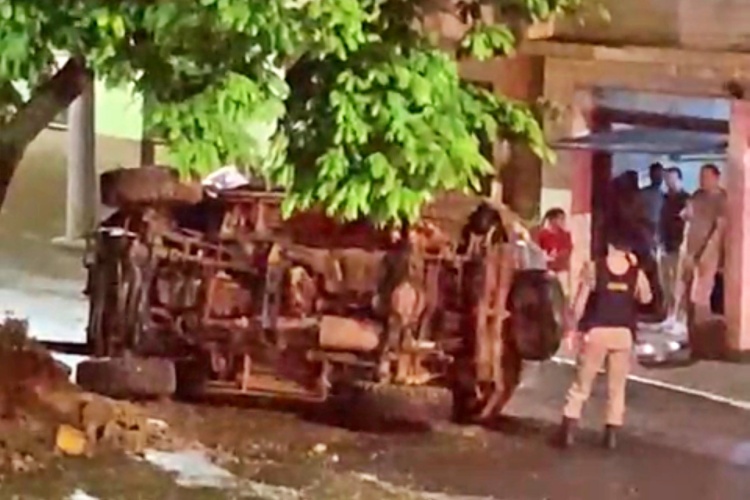 Com o impacto, o canteiro foi destruído e o veículo acabou capotando. O motorista foi socorrido por populares e, segundo as primeiras informações, sofreu apenas ferimentos leves.
