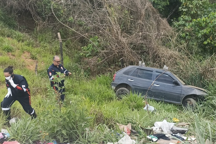 Um carro capotou e caiu em uma ribanceira de aproximadamente 10 metros na tarde deste sábado (18) no bairro Aeroporto em Muriaé. O veículo parou após atingir uma barreira de proteção.